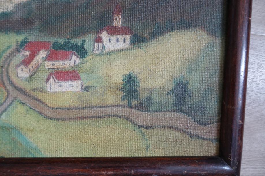 Slika je naslikana verjetno z oljem (nisem čisto prepričana) na leseno podlago, ki smo ji včasih rekli šperplata.