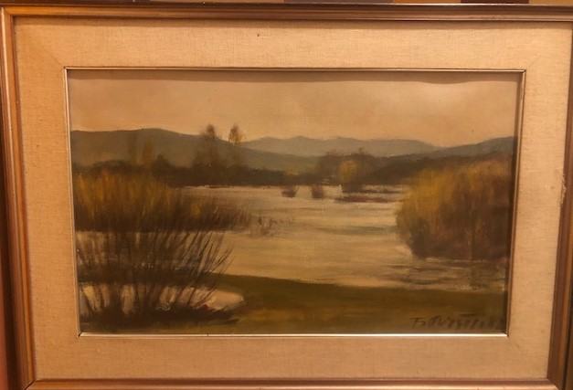 Umetniška slika ak. slikar France Peršin "Cerkniško Jezero" olje na platno, dim. 70x 40 cm letnik 1982.