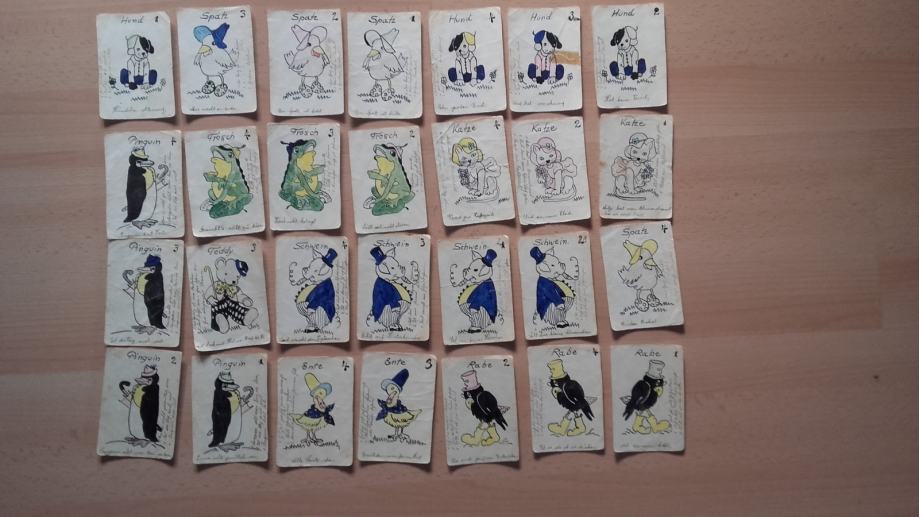 28 starih igralnih kart ročno risanih.Hand made 28 old playing cards