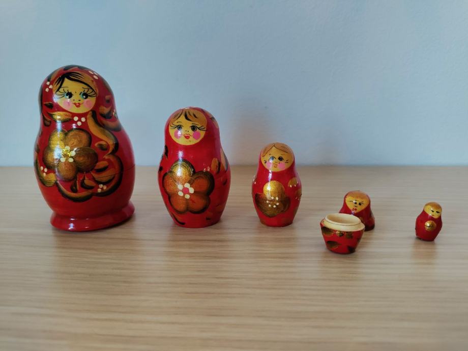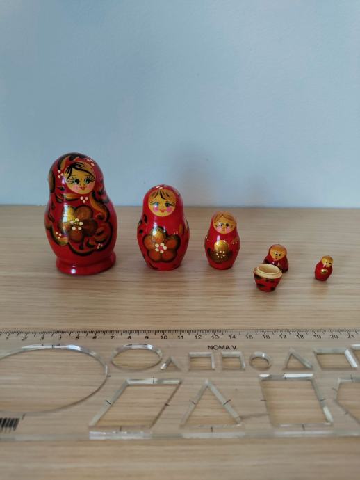 Babuške, lesene, 5 kosov, se zložijo ena v drugo. Ročno izdelane.