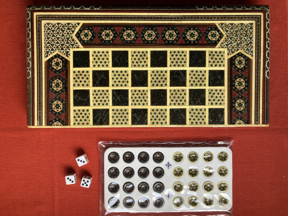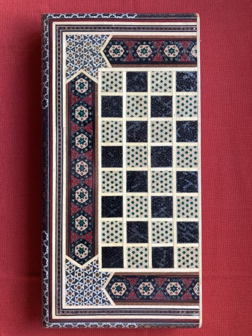 Unikatna igralna deska s figurami za backgammon, intarzija (Khatam Kari), ročno izdelana v renomirani delavnici v Isfahanu (Iran). V odličnem stanju, nerabljena, kot nova. Tel. 031571440