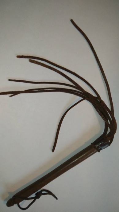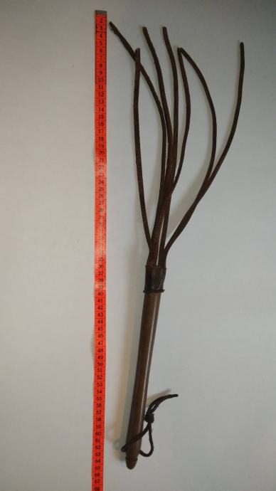 Ročaj je lesen, ostalo je usnje.