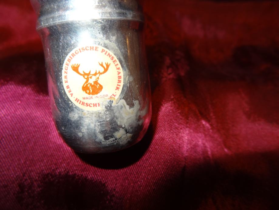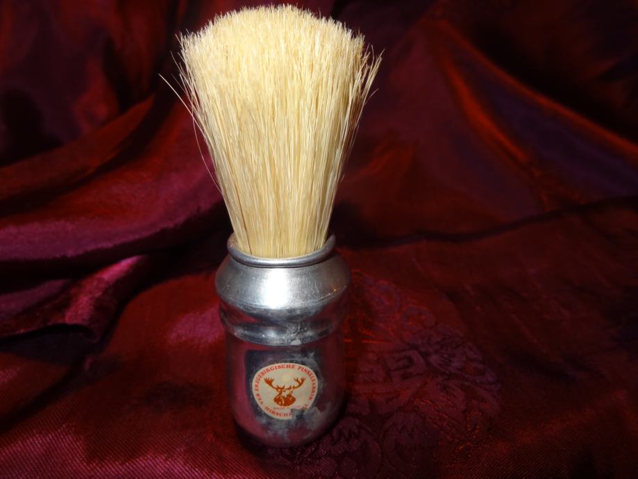 STAR, LEPO OHRANJEN FRIZERSKI BRIVSKI ČOPIČ ZA BRITJE ((mazanje brade pred britjem s šamponom za britje) ALI ODSTRANJEVANJE LAS PO STRIŽENU Z VRATU. ČOPIČ JE IZ DLAK GORSKEGA JELENA, IZDELAN V GDR