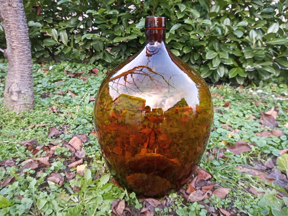 Demižon iz rjavega stekla, višina 50cm, premer 40cm.