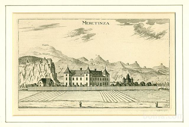 Iz svoje zbirke prodam stari bakrotisk "MERETINZA - Muretinci",pri Stojncih na Ptujskem polju, velikost slike je 21 x 14 cm, iz mape "TOPOGRAPHIA DUCATUS STIRIAE" avtor G.M.VISCHER, tiskano l.1681 v Grazu, grafika je lepo ohranjena. Poštnino plača kupec.
