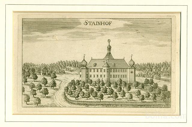 Iz svoje zbirke prodam stari bakrotisk "STAINHOF - Štanof" - na Plitvičkem Vrhu pri Gornji Radgoni, velikost slike je 21 x 14 cm, iz mape "TOPOGRAPHIA DUCATUS STIRIAE" avtor G.M.VISCHER, tiskano l.1681 v Grazu, grafika je lepo ohranjena. Poštnino plača kupec.