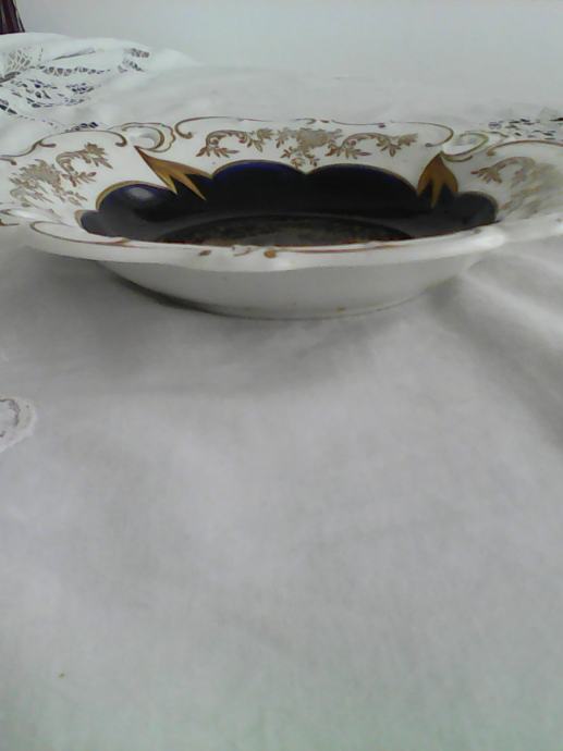 Prodam kobalt okrogel desertni krožnik (skledo) Weimar Porzellan št. 701 (premer 22 cm). Ima bogato pozlato in lepo deluje tudi samo kot okras.