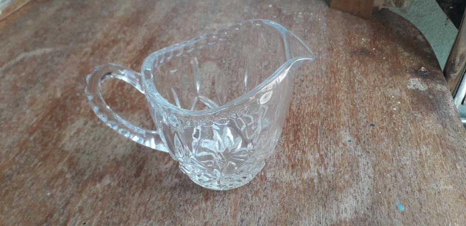 Zelo lep mali vrček iz kristala, bogato okrašen.