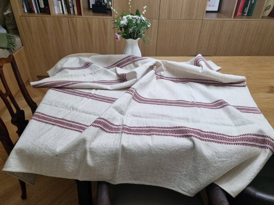 Namizni prt, nerabljen iz skrinje naših babic, ročno tkan, z vzorci, 140 x 160 cm