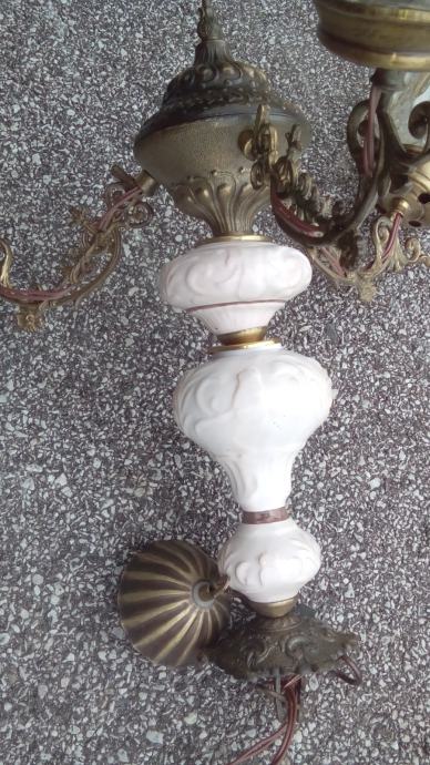 prodam lestenec v kombinaciji medenina in porcelan - steklo , mere so 46cm z verigo 72cm , dod. inf. na tel. 031 538 622 lep pozdrav Peter