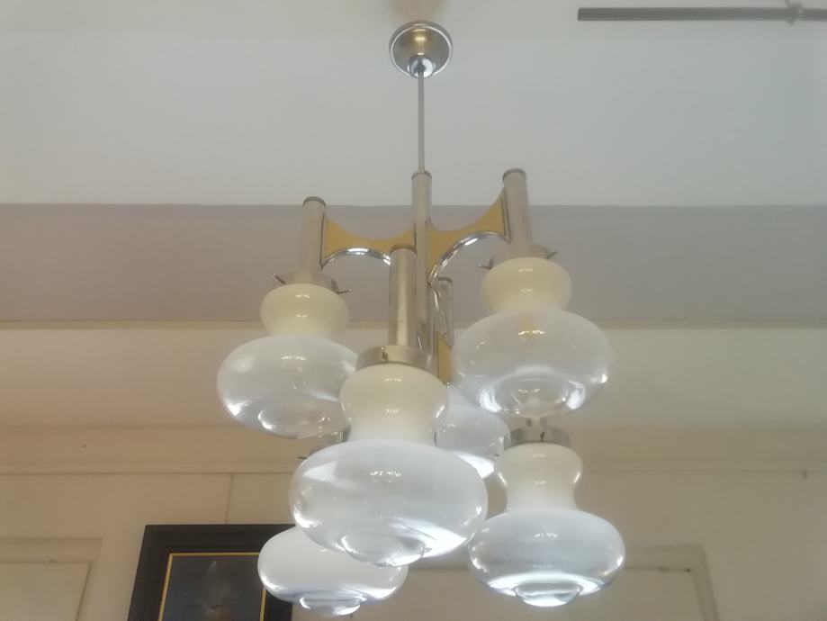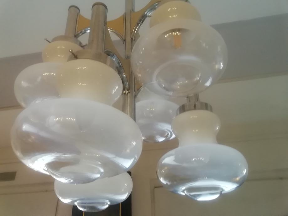 LESTENEC, starejši, vintage, iz 70-ih let, Italija, delujoč, odlično ohranjen, mlečno steklo, vis.90cm,orig.stekleni nastavki, prodam. Tel. 070/271-607.