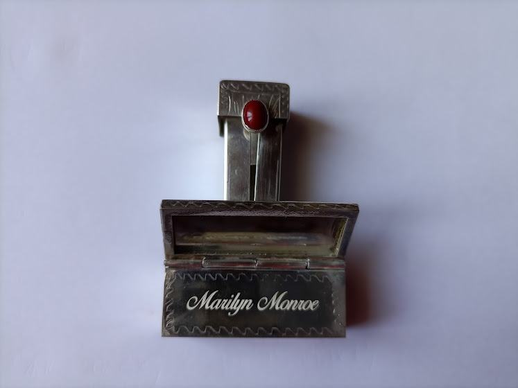 Prodam srebrno šminko, srebro (ima žig za srebro čistina 800 in žig proizvajalca), gor je en rdeči kamen, ki pa ne vem kateri je. Šminka je gravirana z napisom MARILYN MONROE, na zgornji strani je majhno ogledalo, šminke ni več, ostal je samo še srebrni okvir. Za svojo starost je zelo dobro ohranjeno.