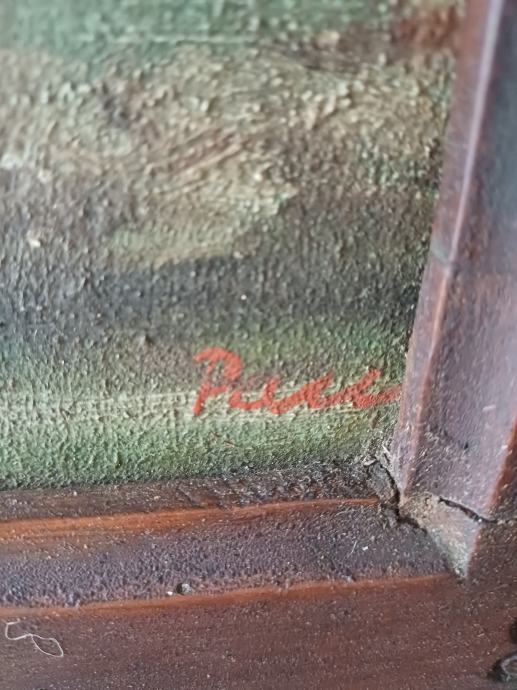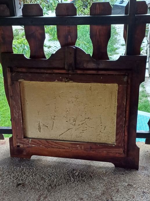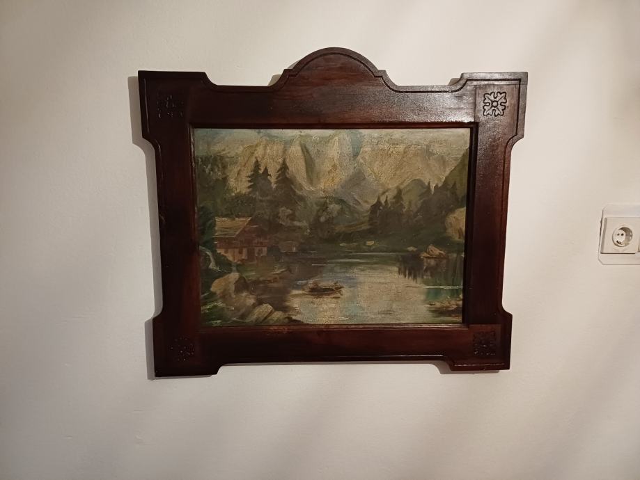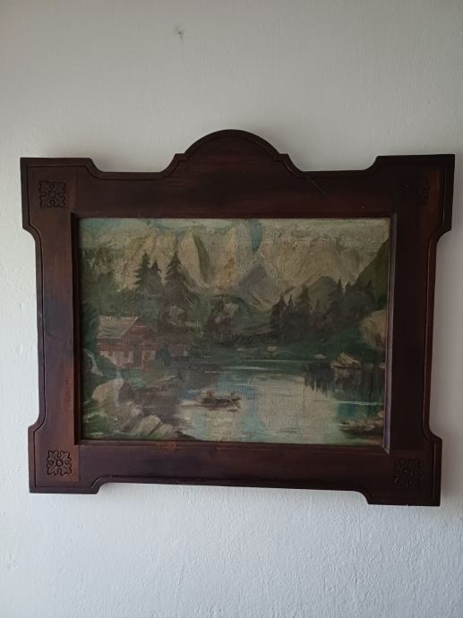 Zelo redek in lep okvir z sliko olje na platnu. Slika in okvir sata stari okoli 100let. Mislim, da je zelo nizka cena 150€ za to danes komaj dobiš en navaden okvir! Slika je, ko jo gledaš v živo je še lepša in okvir. Sem restavrator iz Novega mesta moj kontakt 069401345 Tomaž