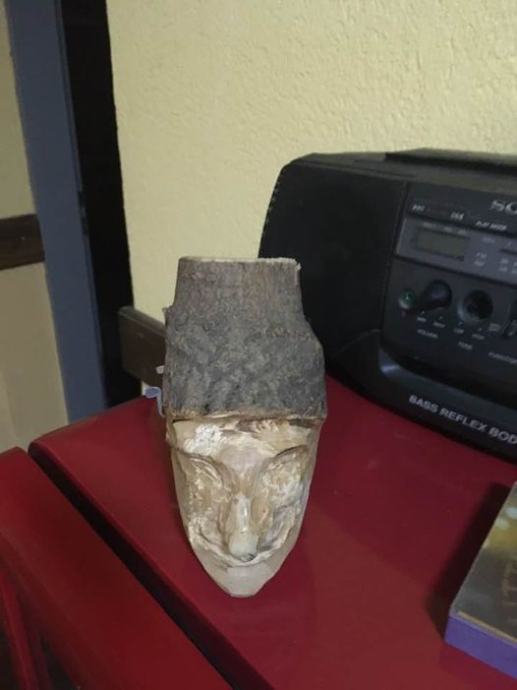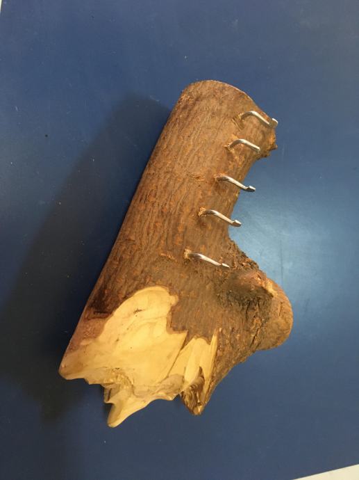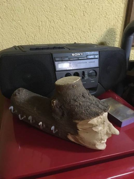 nosilec za ključe, iz lesa izrezljan obraz moškega spola
