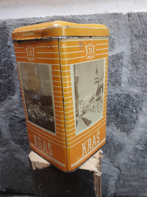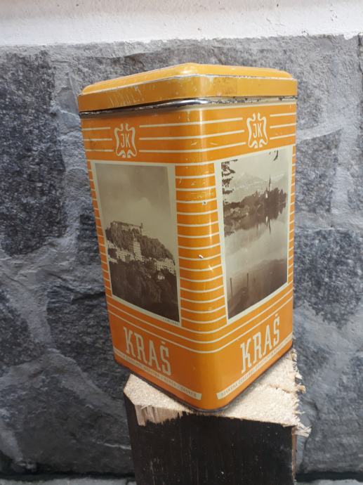Videno ohranjeno škatlo Josip Kraš z motivi slovenskih krajev prodam.mere 13x13x23cm..