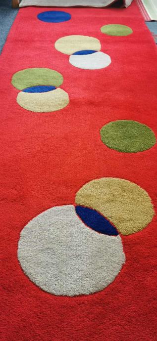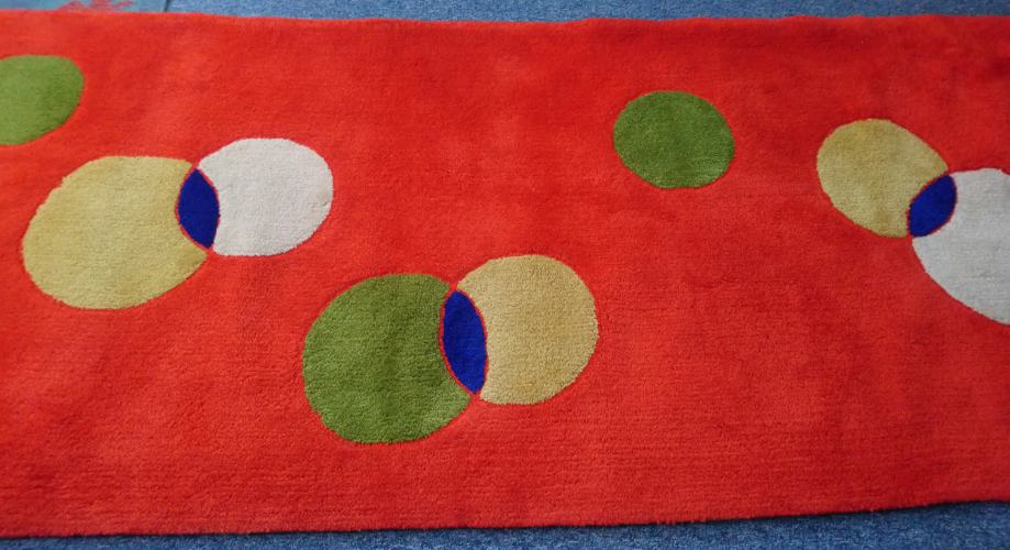Prodam brezhibno retro preprogo velikosti 4 m x 1 m, Zivtex Exclusive - Ručni tafting: unikat, tapiserija, Regeneracija Zabok Jugoslavija, 100% runska volna, mehka, ne pika!, profesionalno očiščena v čistilnici. Ročno izdelana, unikatna.