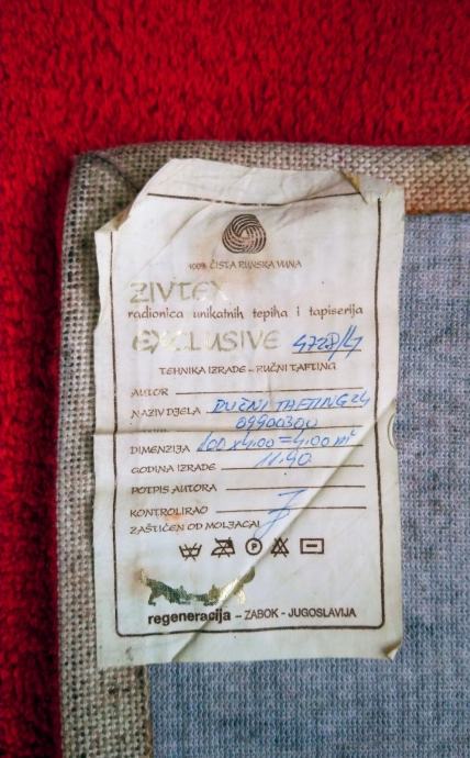 Preproga Zivtex Exclusive Jugoslavija, 100% volna, unikat, tafting