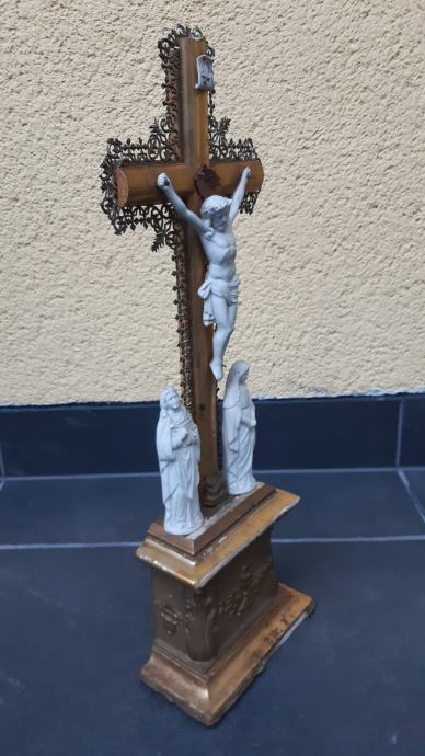 Prodam kip Jezisa na križu,kombinacija lesa in pločevine.Višina 56 cm,možnost postavitve na polico ali montaža na steno.Pošljem po ceniku Pošte Slovenije.