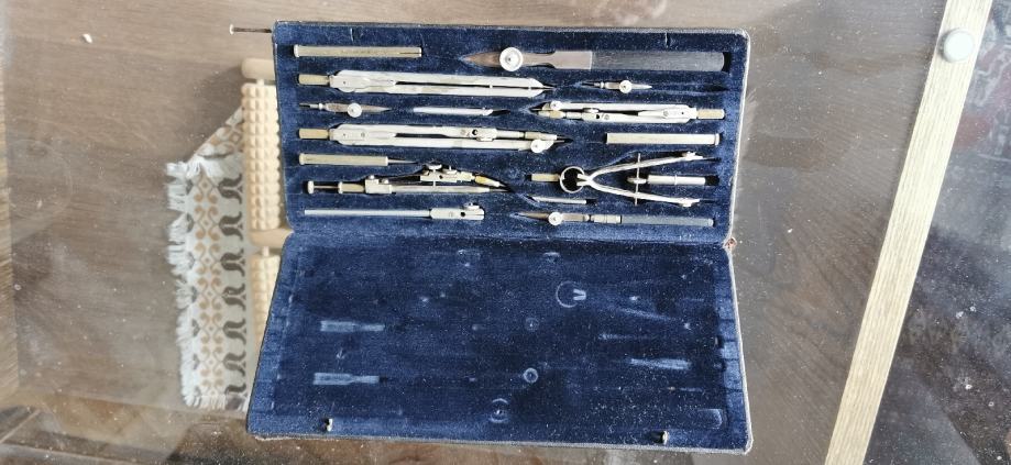 starejše šestilo MAHO, dobro ohranjeno, nemške izdelave ter dva krivuljnika, ravnilo v merilu 1:100 do 1:500 in še eno šestilo dodam, kot na slikah.