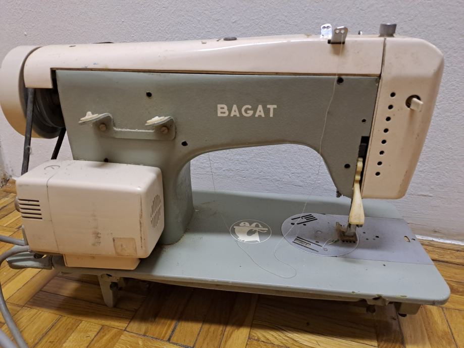 Odslužen šivalni stroj. Potreben čiščenja in popravila.