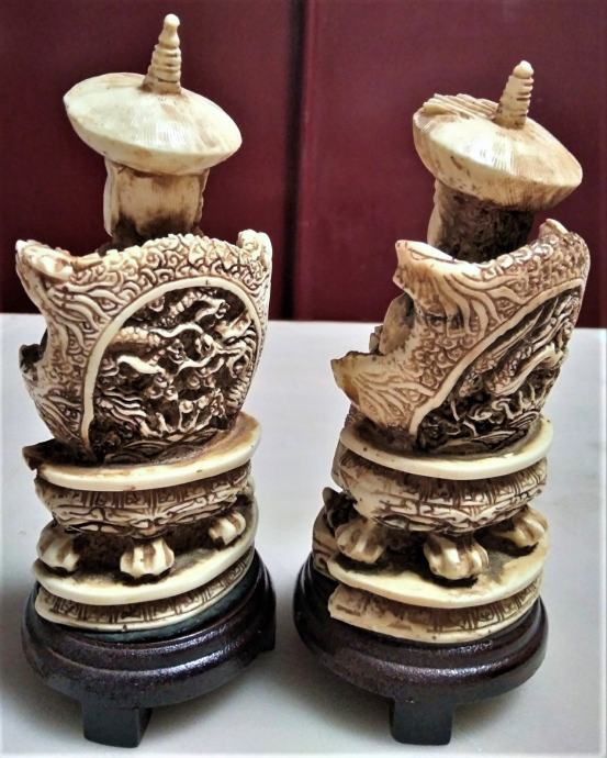 skulpture so narejene iz bivoljih kosti na lesenih stojalih
