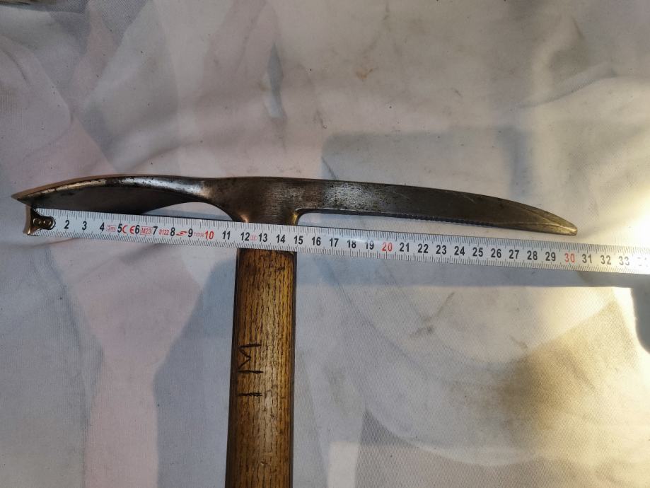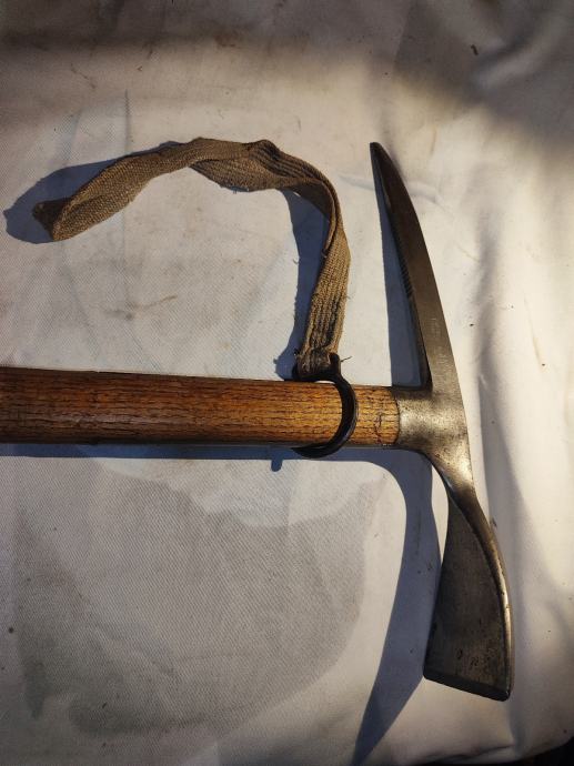 Star planinski cepin (Eispickel), izdelan v Avstriji (Fulpmes, Tirolska) zelo znanem središču kovaštva in planinske opreme.