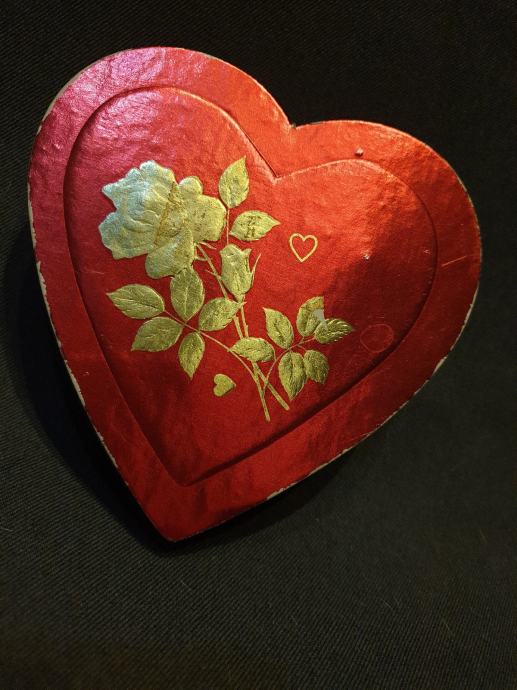 Prodam star medwnjak v obliki srčka. V rdeči škatli. Dim: 10 x 11 cm