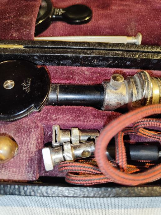 Ohranjen v leseni škatlici z priključki. Lep zbiratelski kos.