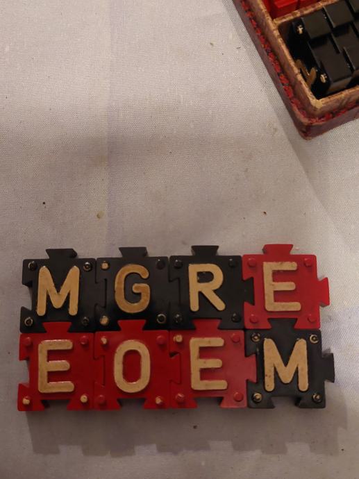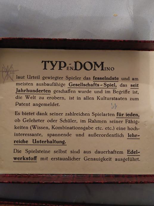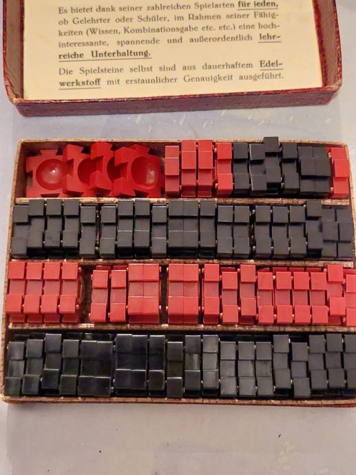 Materjal črk rdeči/črni bakelit. Vse je v originalni škatlici.