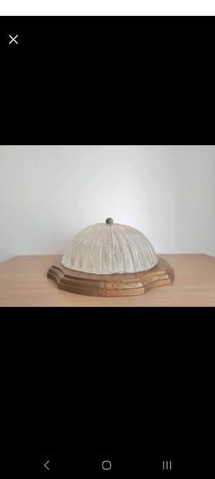 Medeninast gumb na steklu ima že nekaj starostne patine.