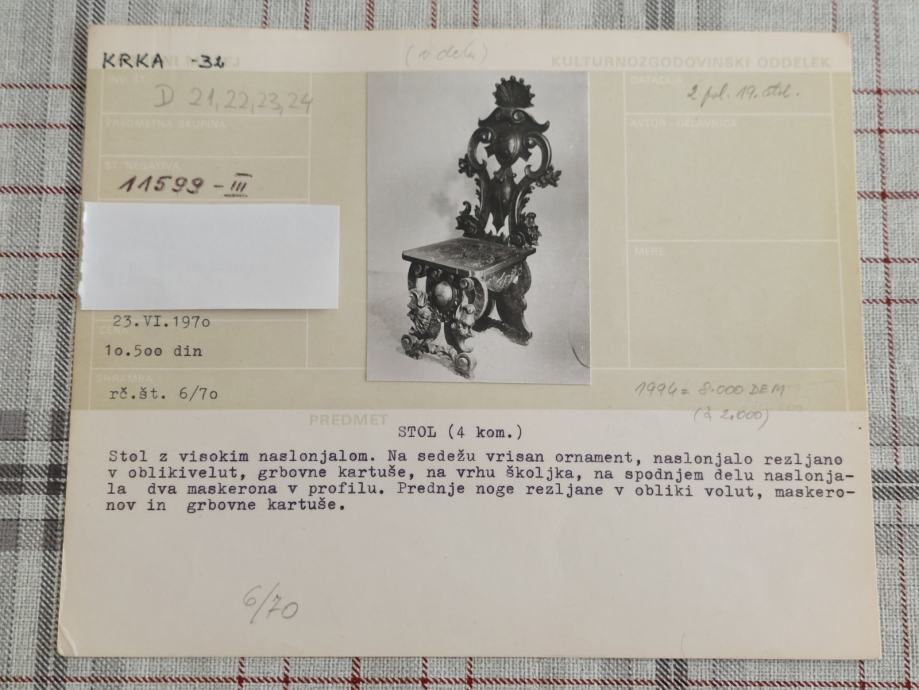 STARI DOKUMENTI,LICITACIJA,ANTIKA,STOL,KOMODA,MIZA,SOFE,1969,1970 ,71