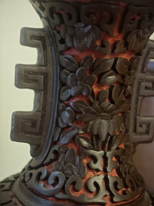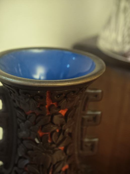 Starinska kitajska črno-rdeča vaza s kositrnim lakom. Modri emajl