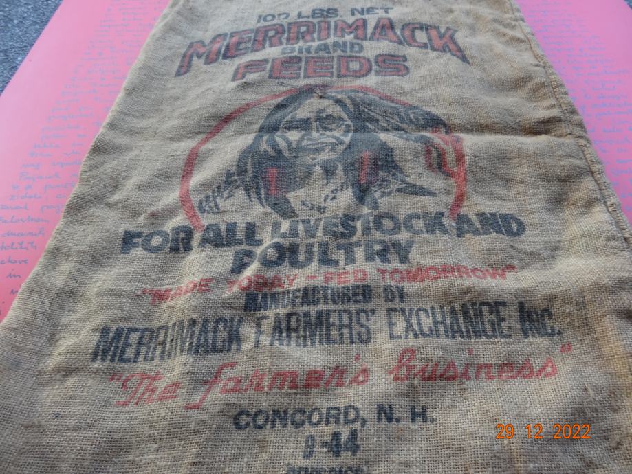 Za svoja leta ( iz 40ih 50ih let ) odlično ohranjena STARINSKA KMETIJSKA VREČA ZA ŽITO ( KRMO ) INDIAN MERRIMACK BRAND FEEDS 100 LBS.
