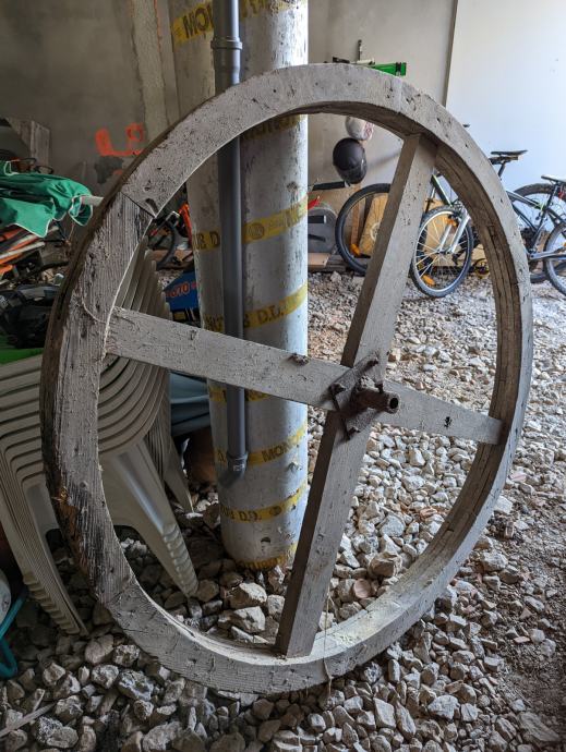 Prodam več delov starinske konjske vprege: deli voza in kolesa (premer kolesa 75 cm) ter dele slamoreznice (kolo, klina oz. okroglo rezilo). Primerno je za starinsko dekoracijo. Vse je hranjeno pod streho na suhem prostoru že več let. Prodam vse v enem kosu oz. enemu kupcu za skupno ceno 30 EUR. Kličite le resni na 031396462.