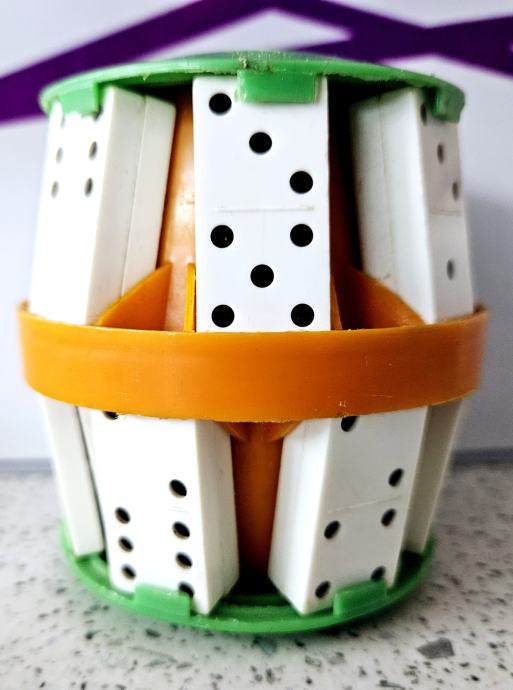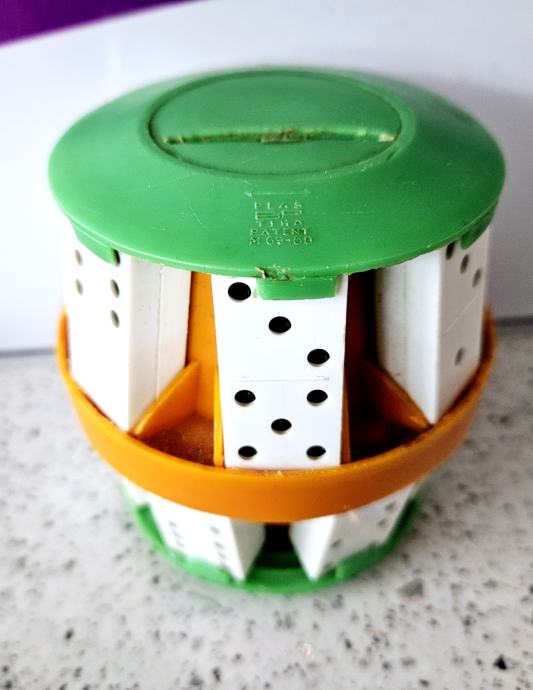 Hranilnik je odlično ohranjen. Posebnost hranilnika pa je, da ima priložene domine, ki se lahko odstranijo in služijo za igranje.