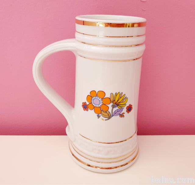 Prodam starinski keramični pivski vrč višine 17.5cm in odprtine premera 7.5cm.