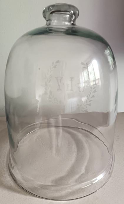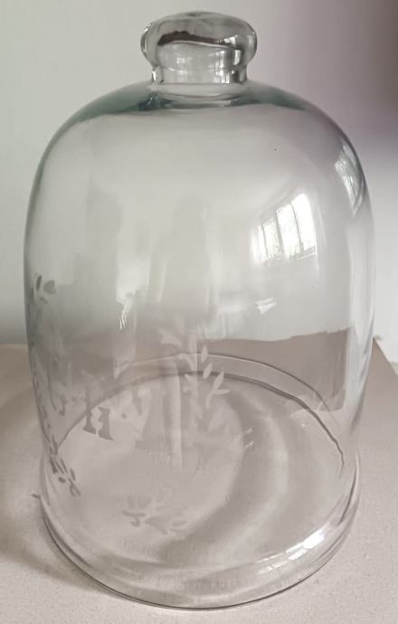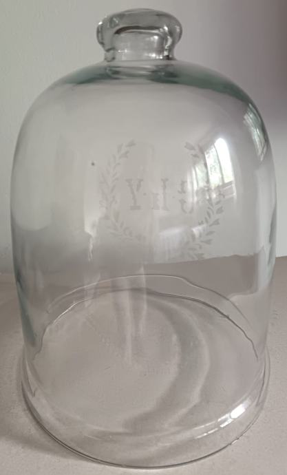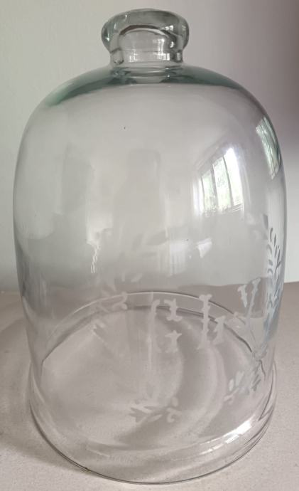 * star velik pihan steklen zvon, monogramiran in okrašen z mat gravuro na sprednji strani