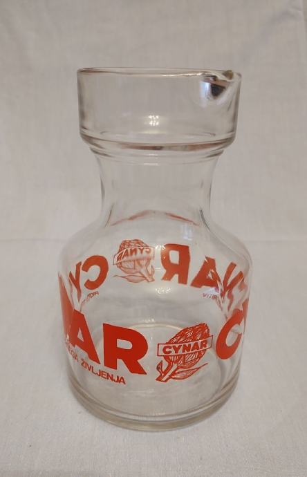 ZANIMIVA VINTAGE STEKLENICA S ŠIROKIM VRATOM IN IZLIVOM, Z NAPISOM "CYNAR".