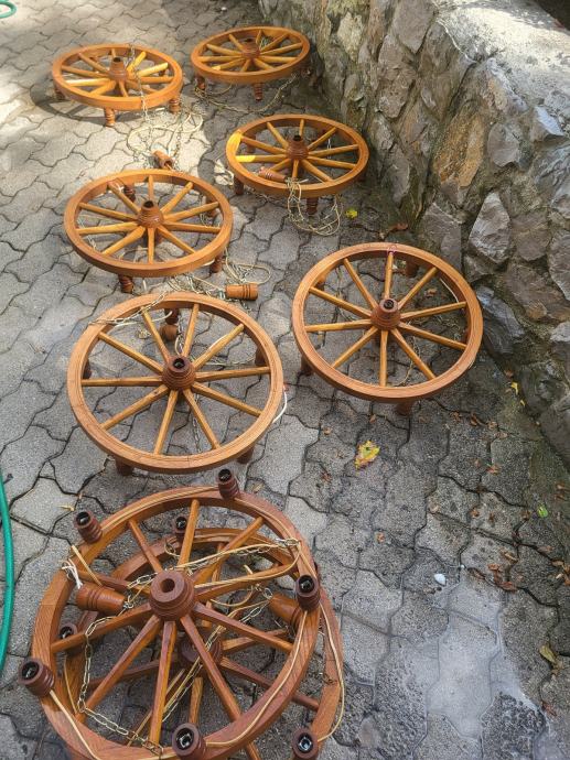 Lesena kolesa v uporabi kot stropna luč. Cena na kom na voljo samo.še par kom frez fasng, doz za luči