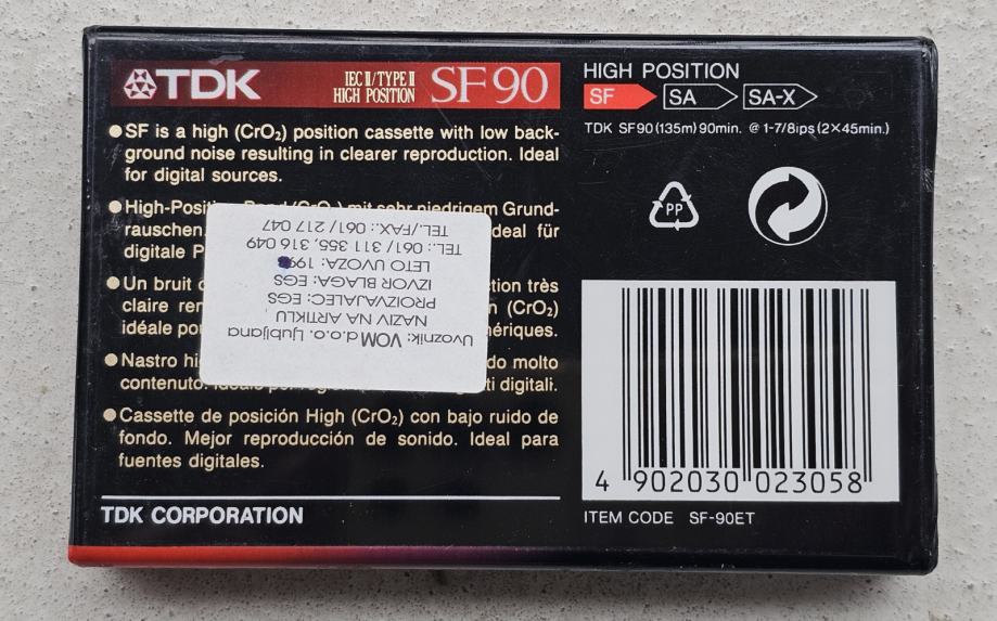 TDK SF-90 ET - CHROME 90 Mins / TYPE 2 II / BLANK CASSETTE TAPE 1 kos