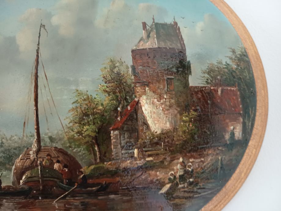 Umetniško delo, olje na lesenem ovalnemu konveksnem panelu,