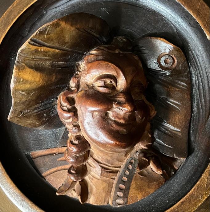 Ročno rezljan leseni portret ženske v tradicionalni alzaški noši z značilnim velikim trakom in kitami. Izdelano v Franciji okoli sredine 20. stoletja. Dekorativno in zbirateljsko vredno – lep primer evropske ljudske umetnosti.