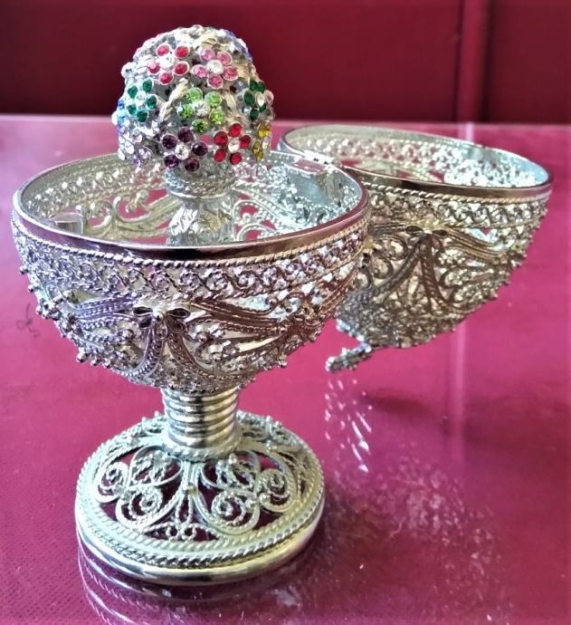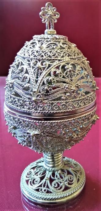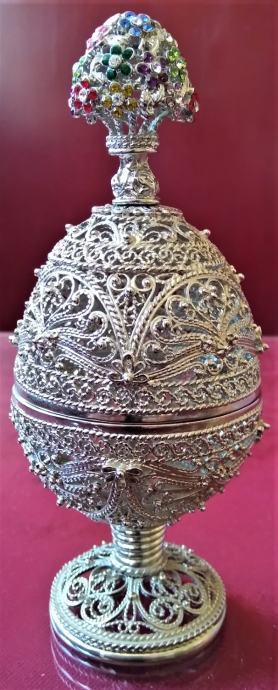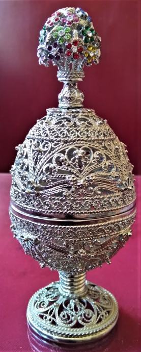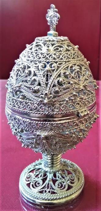 Ruski cesar Aleksander III. je prvo takšno jajce podaril svoji ženi Mariji Fjodorovni za veliko noč leta 1885. Darilo ji je bilo tako všeč, da je cesar še naprej obdaroval draga jajca za vsak naslednji praznik. To tradicijo je nadaljeval njegov naslednik Nikola II.