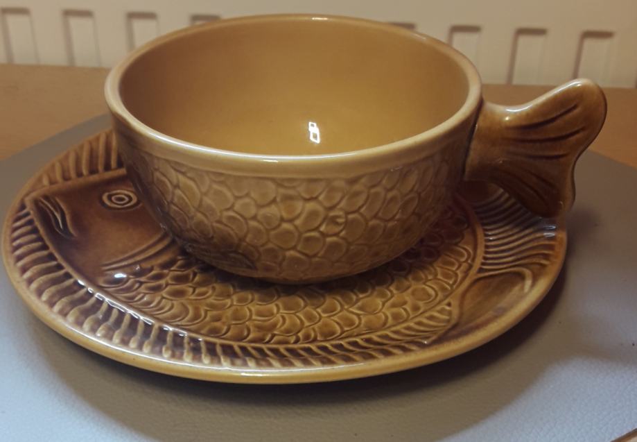 Vintage jedilni servis za ribe (skleda za ribjo juho+krožnik za ribo) Glazirana keramika, proizvajalec KIL Jugoslavija iz 70ih let prejšnega stoletja. Brezhibno.