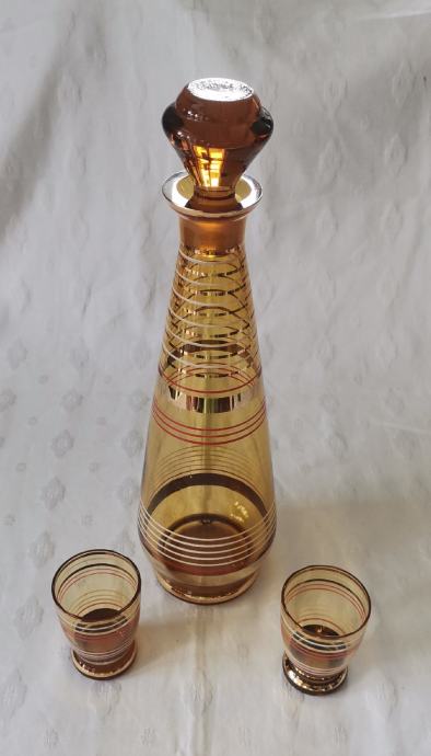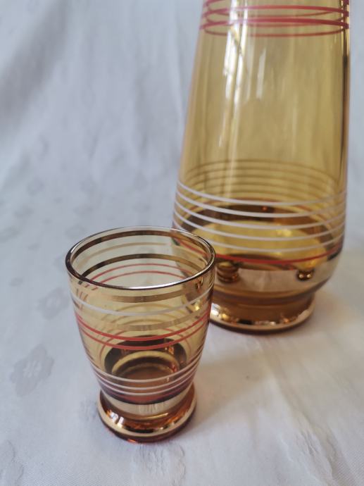 Vintage komplet iz tankega rjavega stekla s pozlato...