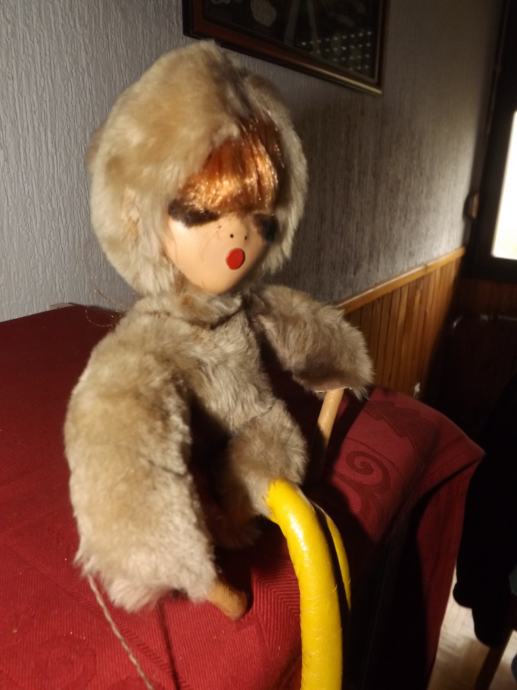 Prodaja se velika lepo ohranjena vintage starinska dekorativna lutka, (rdečelaska) najdena v zasebni zbirki AT. Lutka je ročno izdelana iz usnja, ročno poslikana, roke in noge so gibljive, na njej je še original certifikat, sedemdeseta leta, redko viden zbirateljski kos, velikost 40cm. (za poznavalce)
