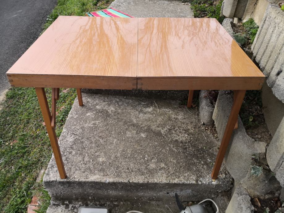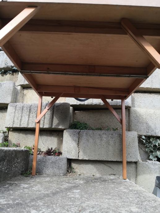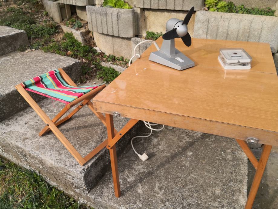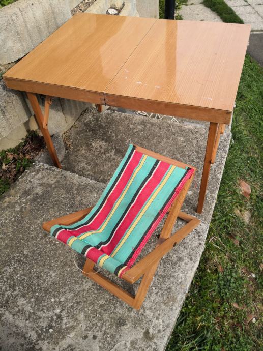 Prodaja se retro prenosna piknik zložljiva lesena miza, vintage kovček z zložljivo piknic mizico,mere mize 80x60cm višina ca 55 cm, zraven je star zložljiv stolček, ki se mora na enem kontu samo zašit, retro miza, space age, vesoljna doba,,,, - 39€,