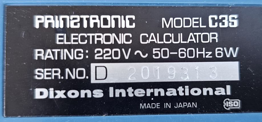 Vintage Namizni kalkulator Prinstronic Model C35 Japonska 220V Primern