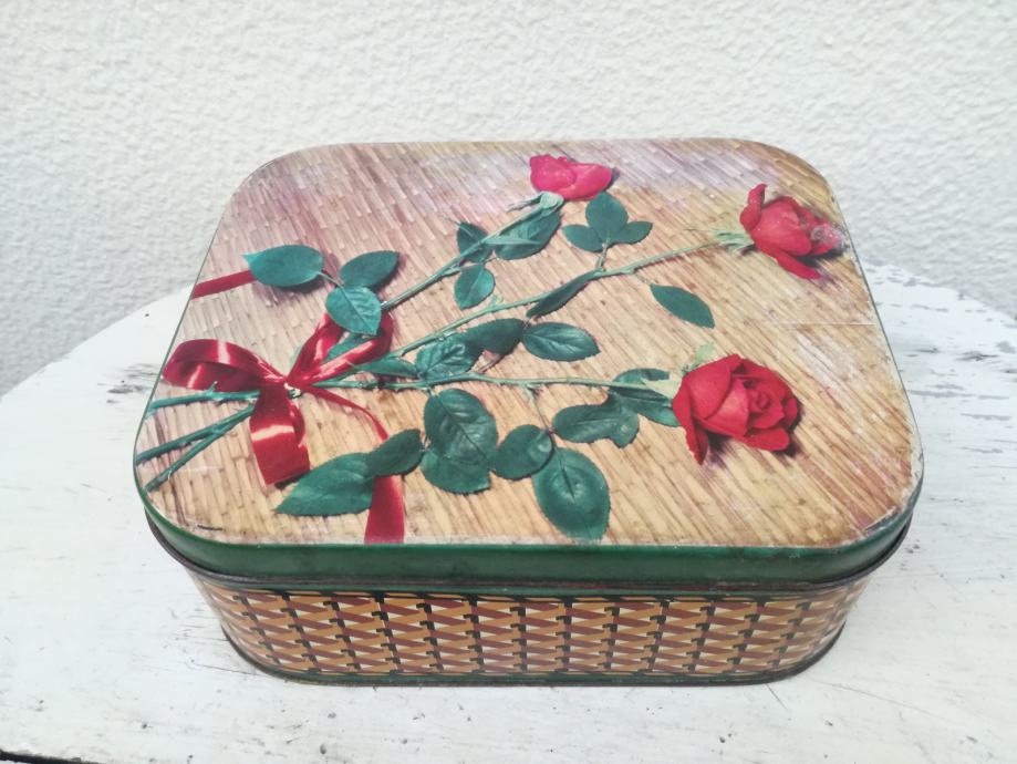 Vintage plehnata kovinska škatla iz 60/70ih let. Dimenzije 22 x 18 x 9cm.