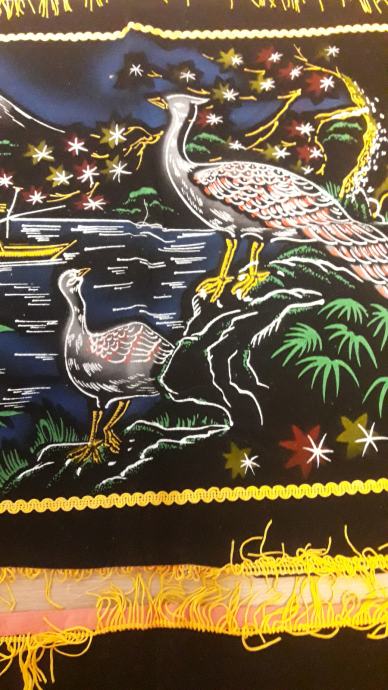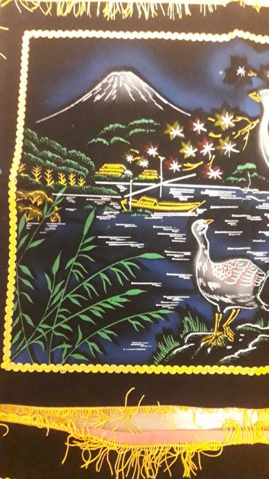 Čudovit par starinskih prevlek za vzglavnike iz 70ih let prejšnjega stoletja. Obe sta iz črnega žameta s poslikanim okrasjem. Žive barve in čudovita grafika, orientalski stil. Obe sta brezhibni.